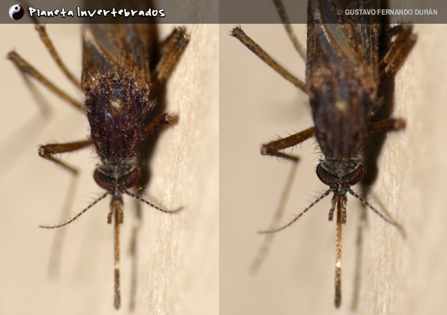 Mansonia indubitans, fotografado em Santa Fe, Argentina. Veja a proporção entre o palpo e probóscide. Fotos de Gustavo Fernando Durán.