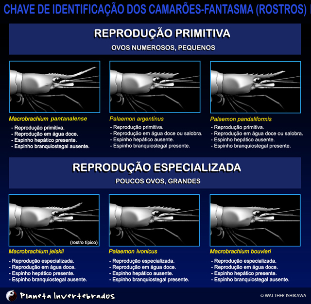 para camarões de reprodução primitiva: Se você encontrar fêmeas ovadas com padrão abreviado (ovos grandes e pouco numerosos), certamente se trata de um adulto (camarão-fantasma!).