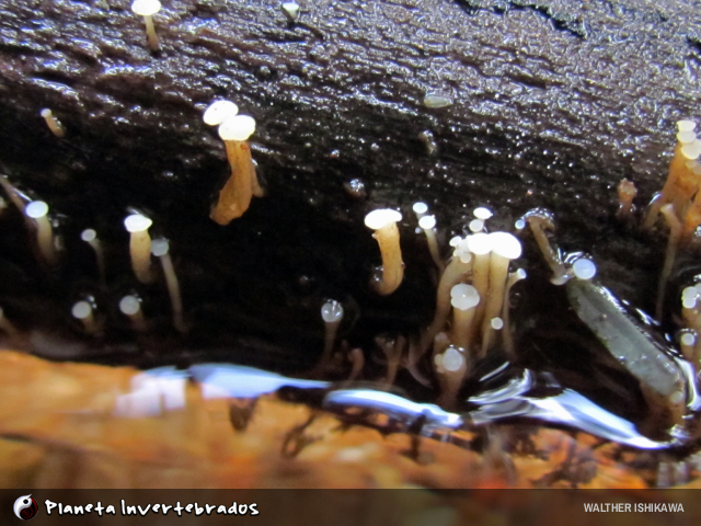 Cudoniella sp., fotografada em um tronco submerso na Serra do Japi, em Jundiái, SP. Fotos de Walther Ishikawa.